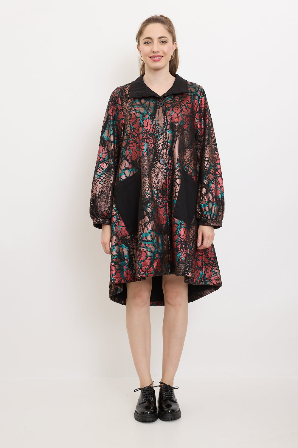 Un manteau fait pour les saisons chaudes et douillettes. Ce manteau présente des motifs en pierre dans plusieurs teintes pour ajouter une sensation de luxe et d'élégance à votre garde-robe d'hiver. Le manteau présente des boutons pour permettre un ajustement confortable et a deux poches sur le devant.