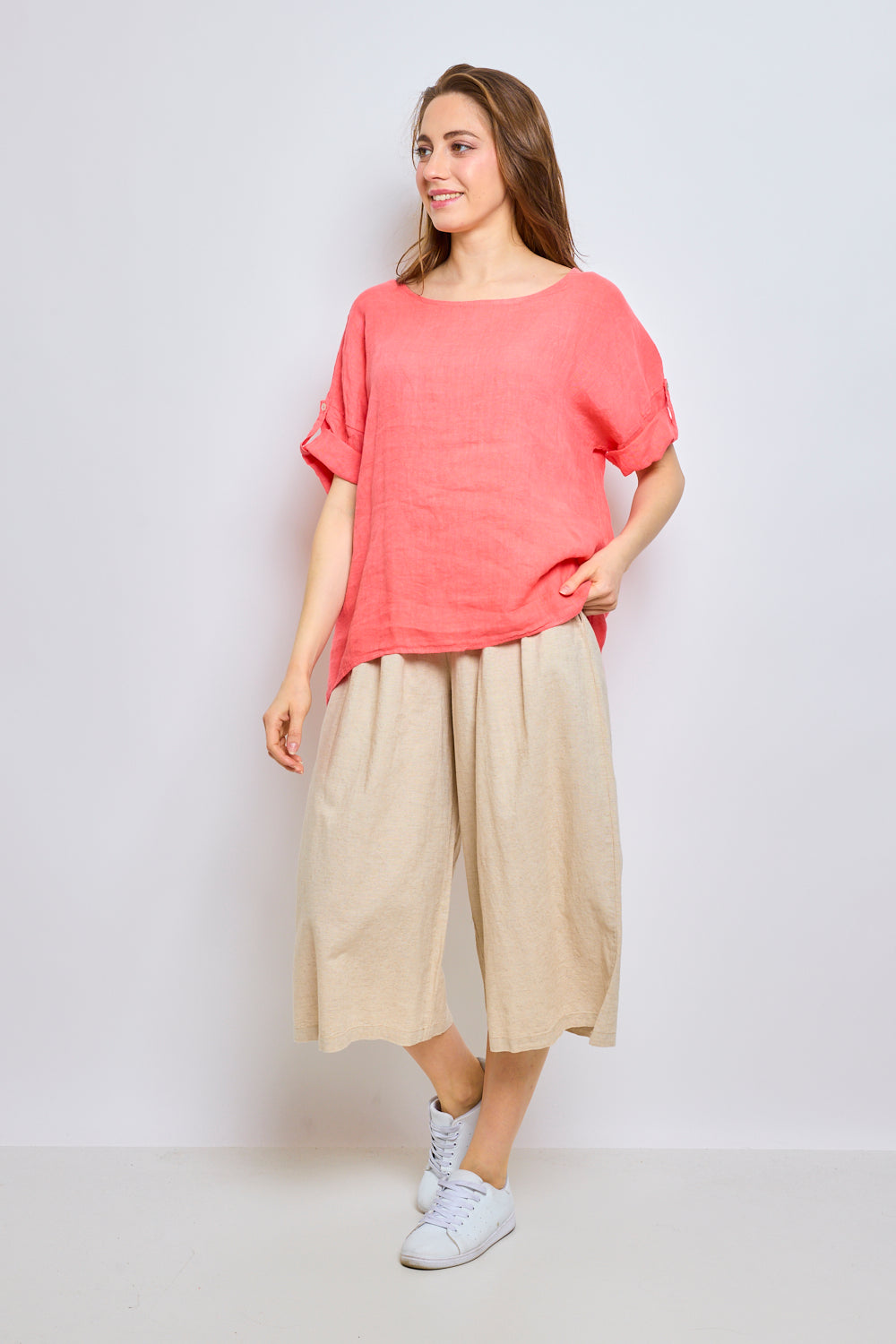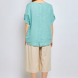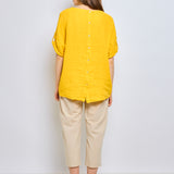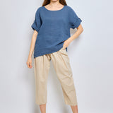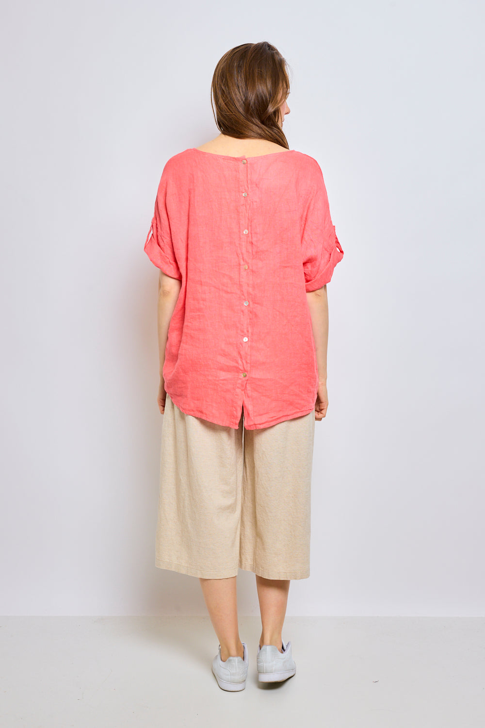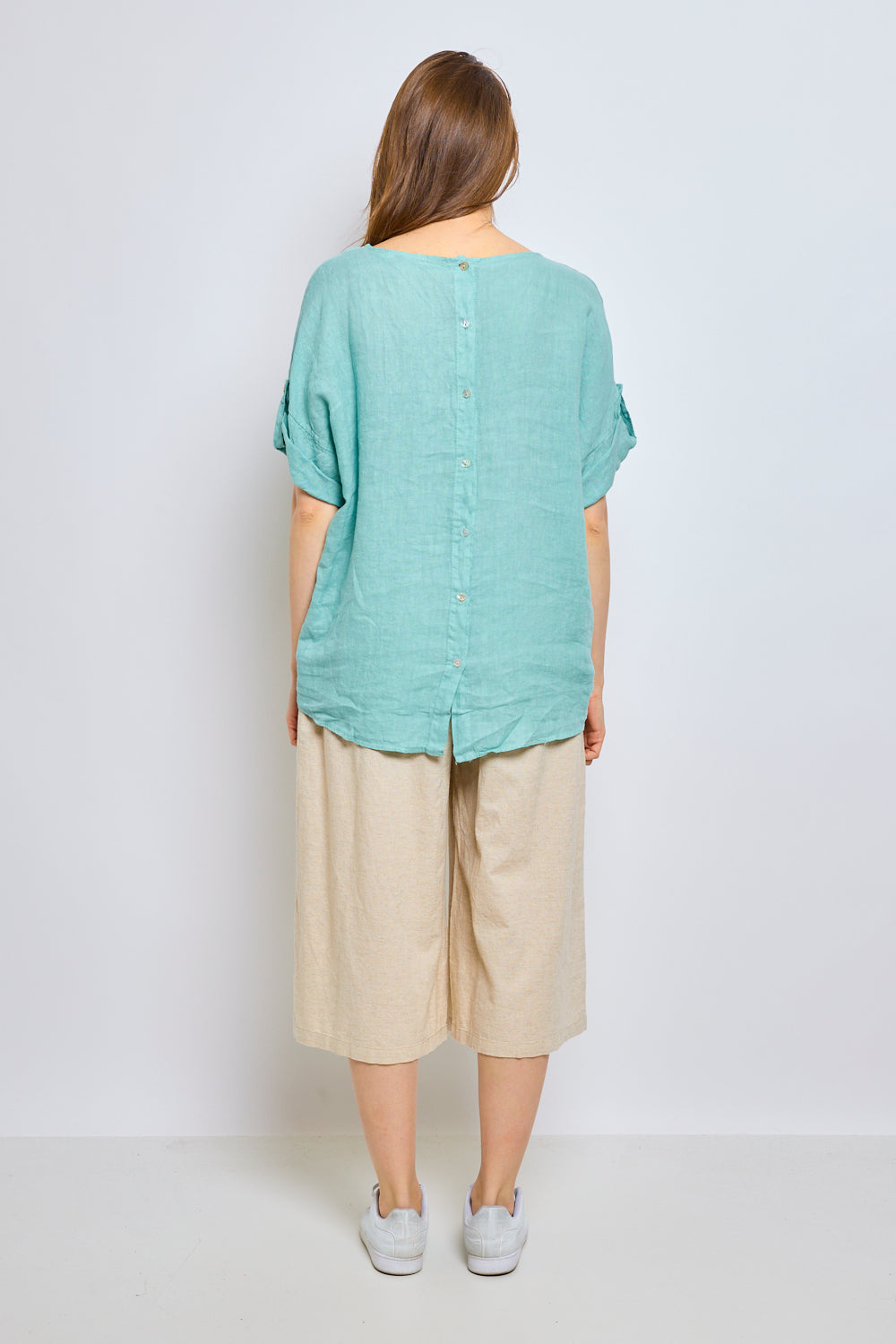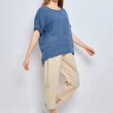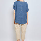 Top en lin avec manches à pattes boutonnées