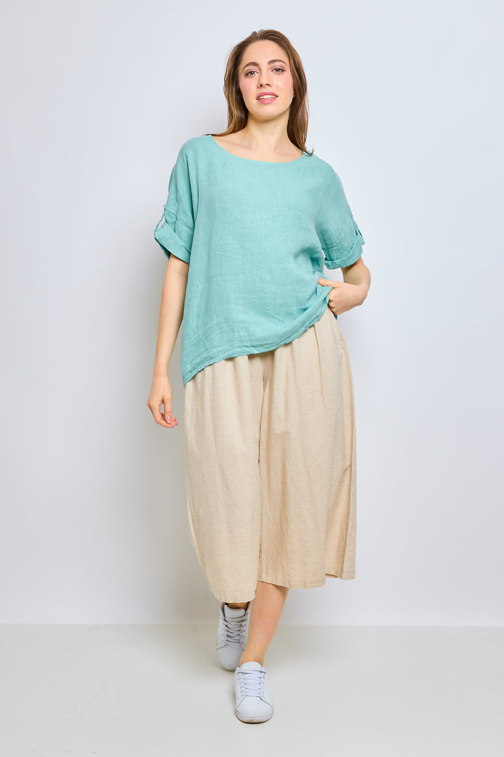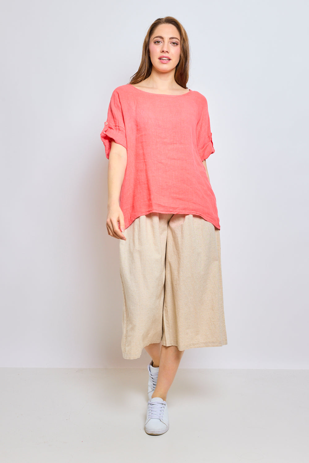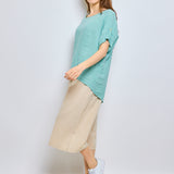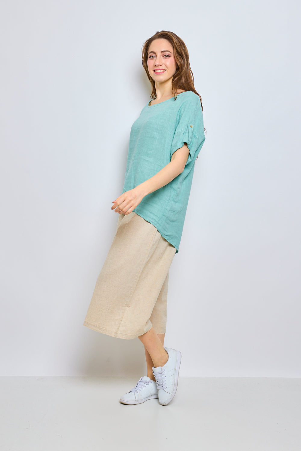 Top en lin avec manches à pattes boutonnées