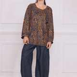 Disponible en plusieurs coloris, ce haut à motifs s’associe facilement avec un jean pour un style casual, ou avec une jupe ou un pantalon habillé pour une allure plus sophistiquée. Une pièce polyvalente qui s’adapte à toutes les occasions.