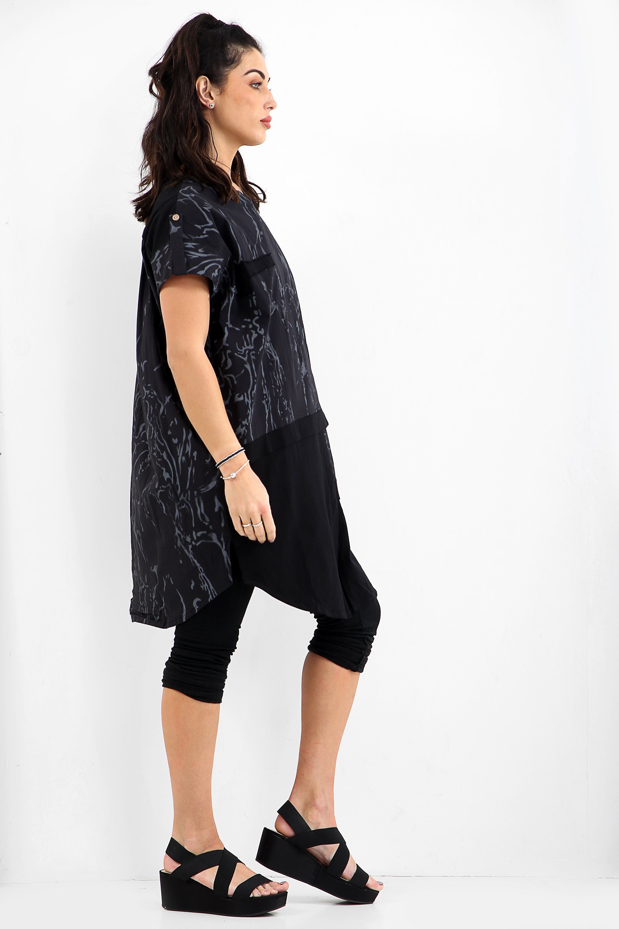 Notre robe tunique noire est légère et respirant, ce qui en fait le complément parfait de votre garde-robe de mi-saison. Elle présente une jolie asymétrique qui permet de donner du relief à votre silhouette.