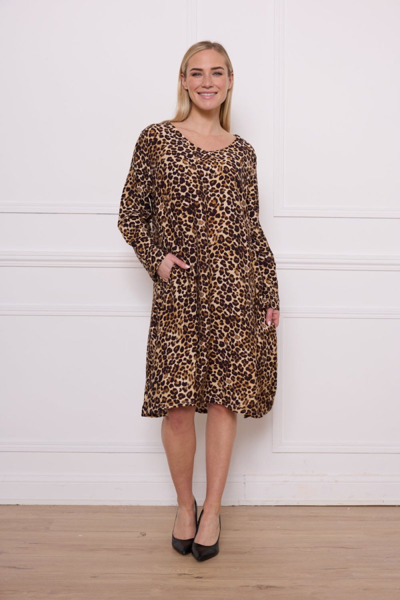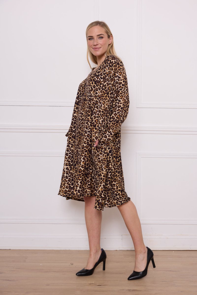 Affirmez votre féminité avec cette robe fluide imprimée léopard, conçue pour allier élégance et caractère. Sa coupe flatteuse sublime les courbes tout en offrant un grand confort grâce à son tissu léger et agréable à porter. Idéale pour une tenue glamour et tendance, du quotidien aux soirées habillées.