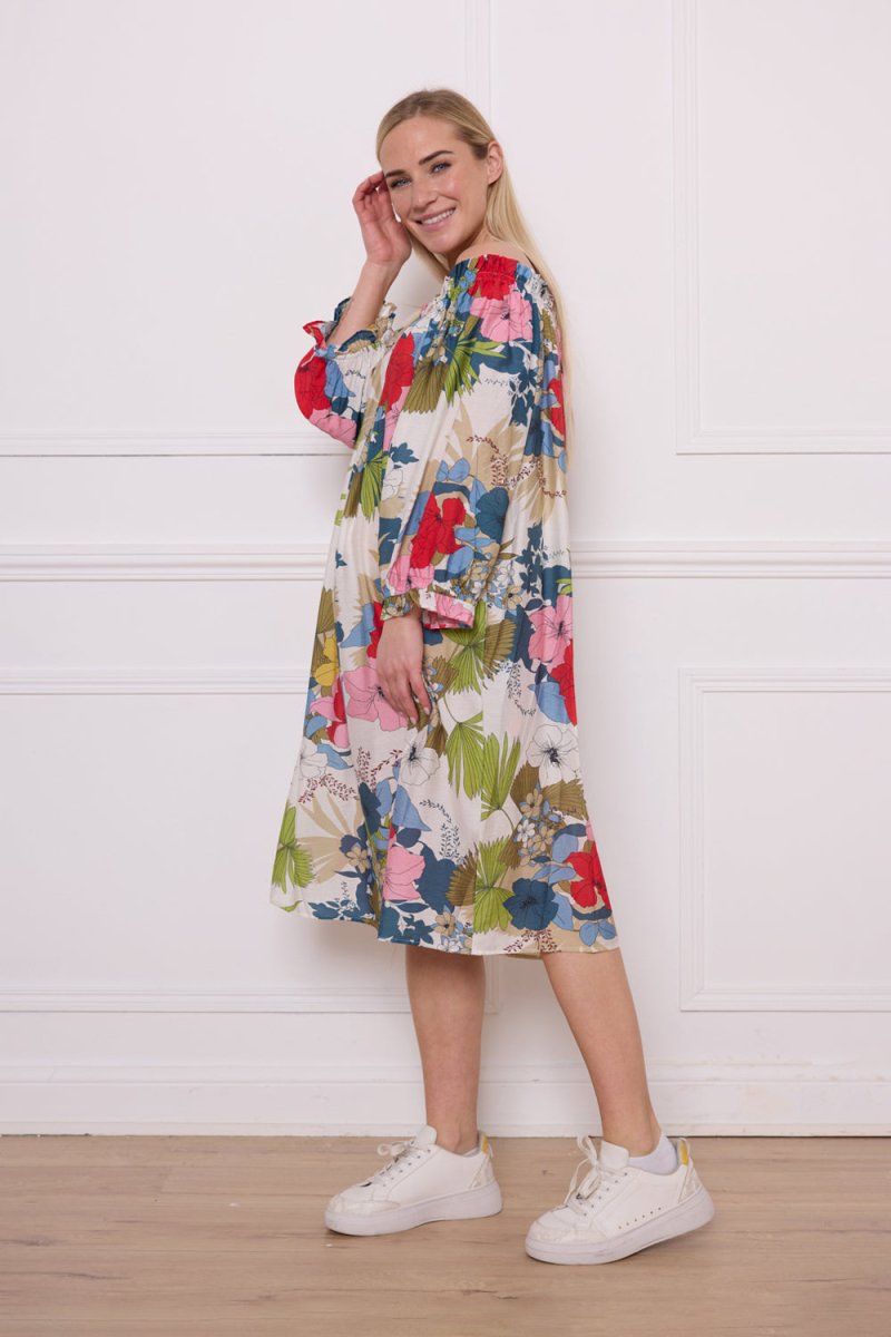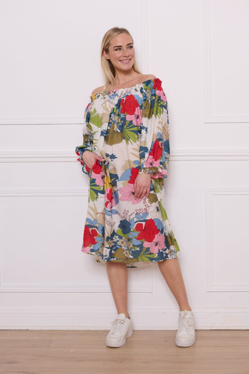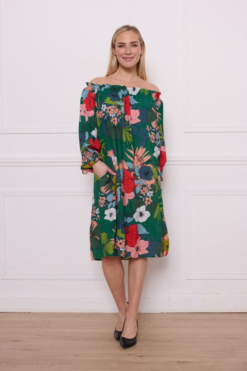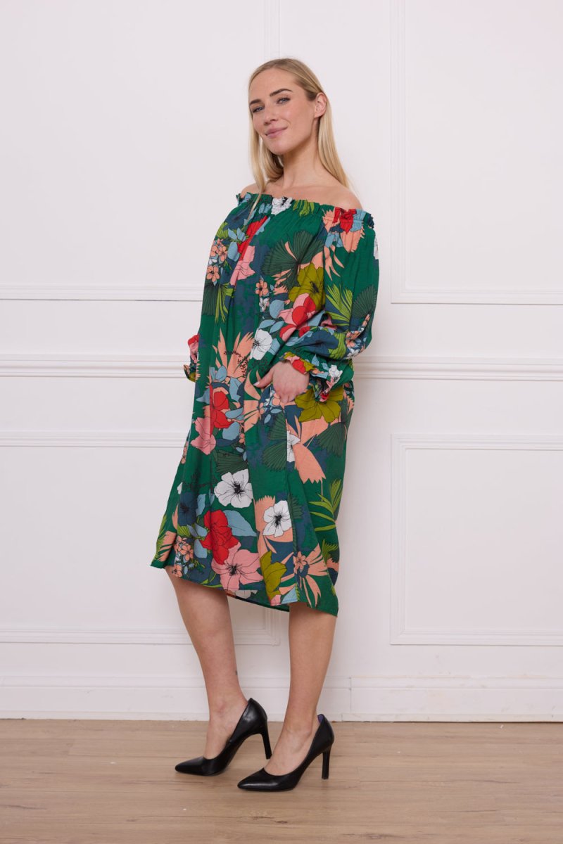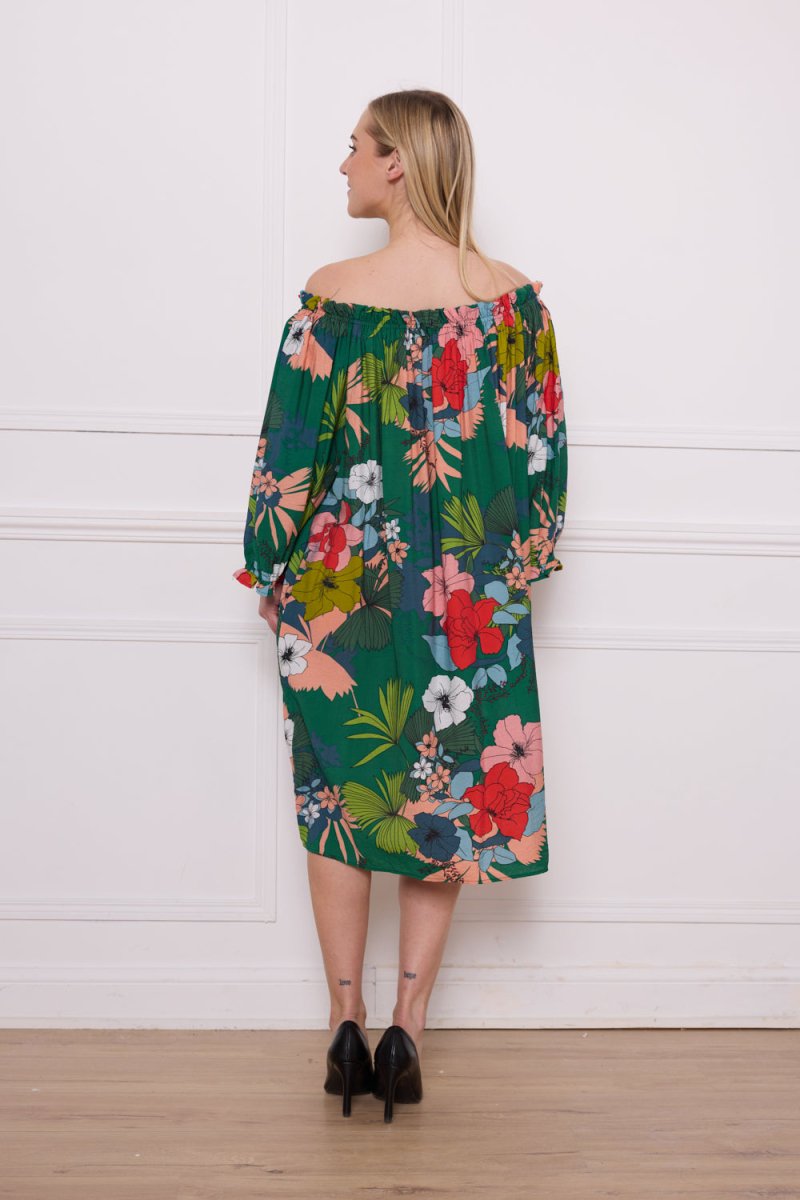 Affirmez votre féminité avec cette robe à épaules dénudées imprimée blanc et vert, parfaite pour une allure chic et estivale. Son tissu doux et respirant procure un confort absolu, tandis que sa coupe fluide met en valeur la silhouette avec une touche romantique. Idéale pour une sortie ou une occasion spéciale.