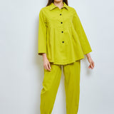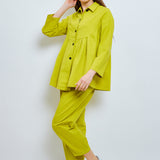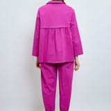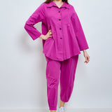 Il s'agit d'une chemise avec une coupe assez singulière, disponible en noir, vert ou fuschia. Elle est suffisamment confortable pour être porté lors de journées ensoleillées, mais elle peut également être porté sur d'autres hauts ou robes.