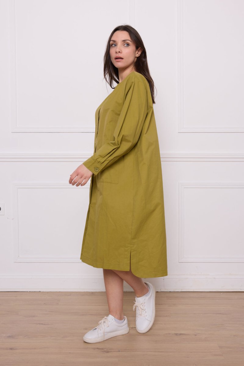 Osez l'élégance avec notre manteau long léger grande taille en coton et nylon, conçu pour mettre en valeur vos courbes avec style et raffinement. Sa longueur avantageuse offre une silhouette élancée tandis que sa matière légère assure un confort quotidien, disponible en beige chic et vert nature pour s'accorder à toutes vos tenues.