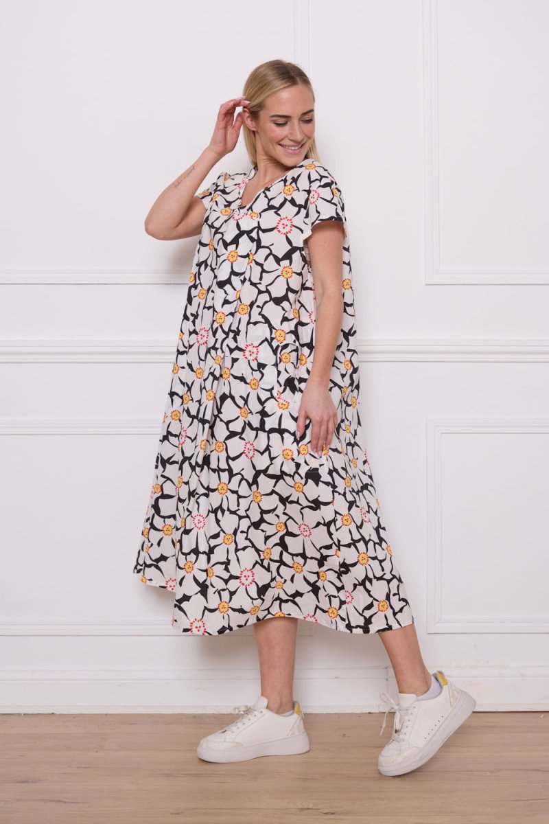 Craquez pour l’élégance intemporelle de cette robe longue fluide imprimée en coton, qui allie féminité et confort. Son tissu léger offre un tombé impeccable, tandis que sa coupe évasée met en valeur toutes les silhouettes. Parfaite pour une tenue sophistiquée et agréable à porter au quotidien.