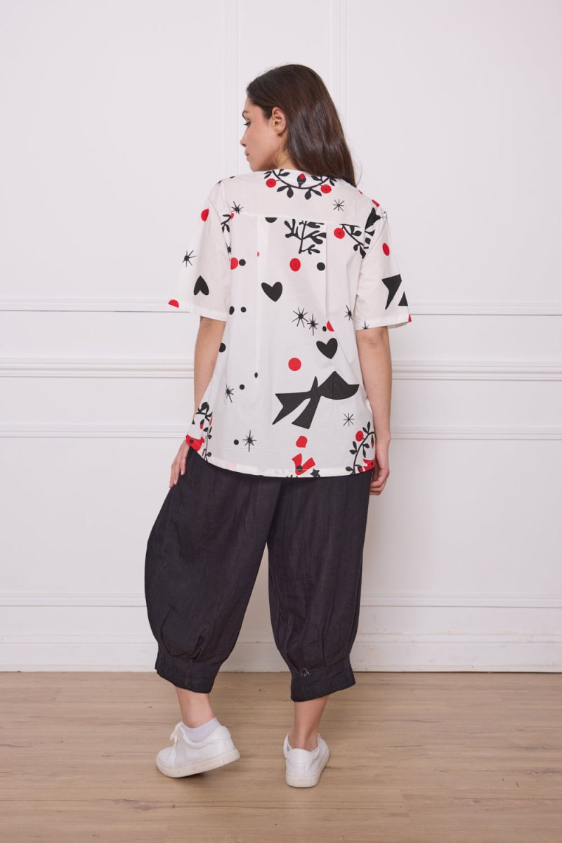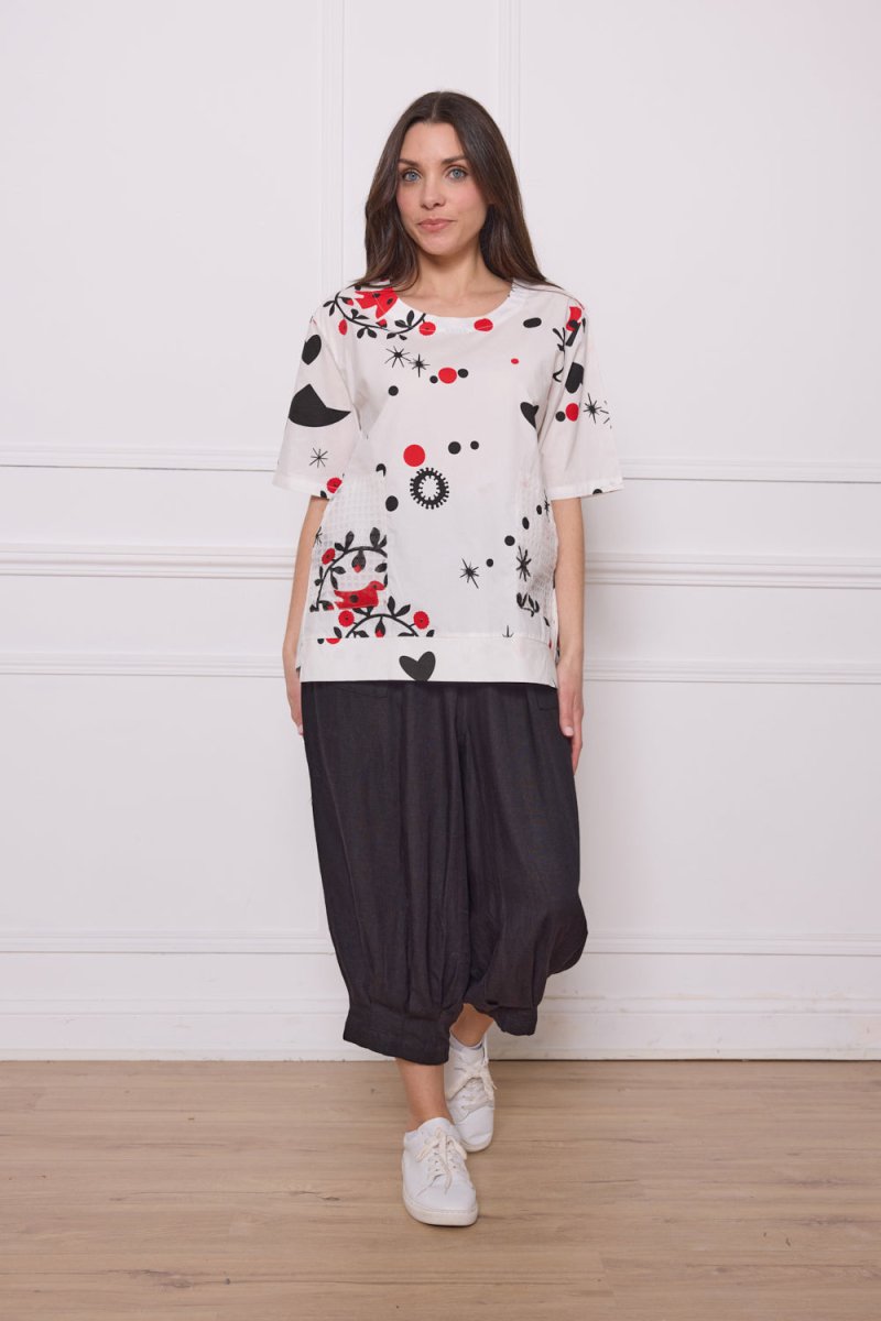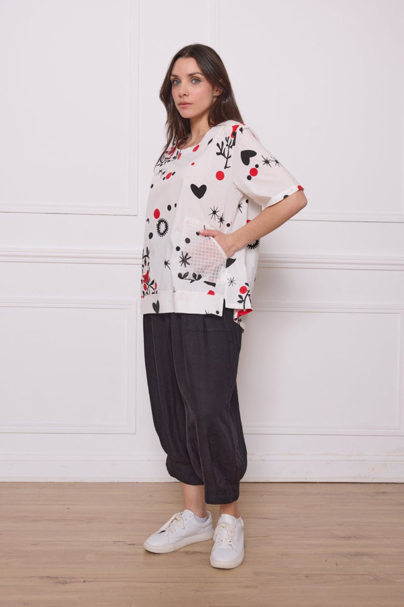 Ajoutez une touche graphique à votre tenue avec ce T-shirt imprimé en coton moderne, parfait pour un look casual et tendance. Son tissu respirant assure un confort optimal tout au long de la journée, tandis que sa coupe actuelle met en valeur la silhouette. Disponible en blanc ou noir, il s’accorde avec tous vos bas préférés.