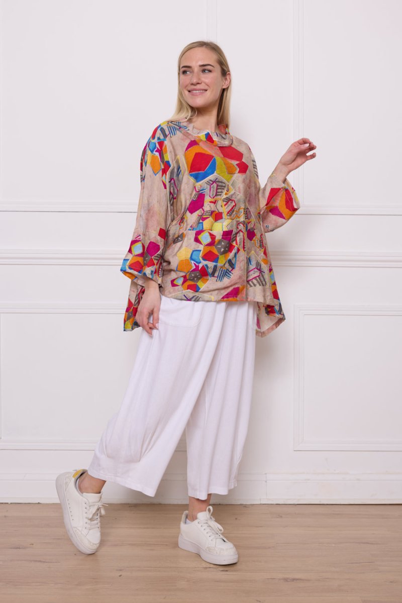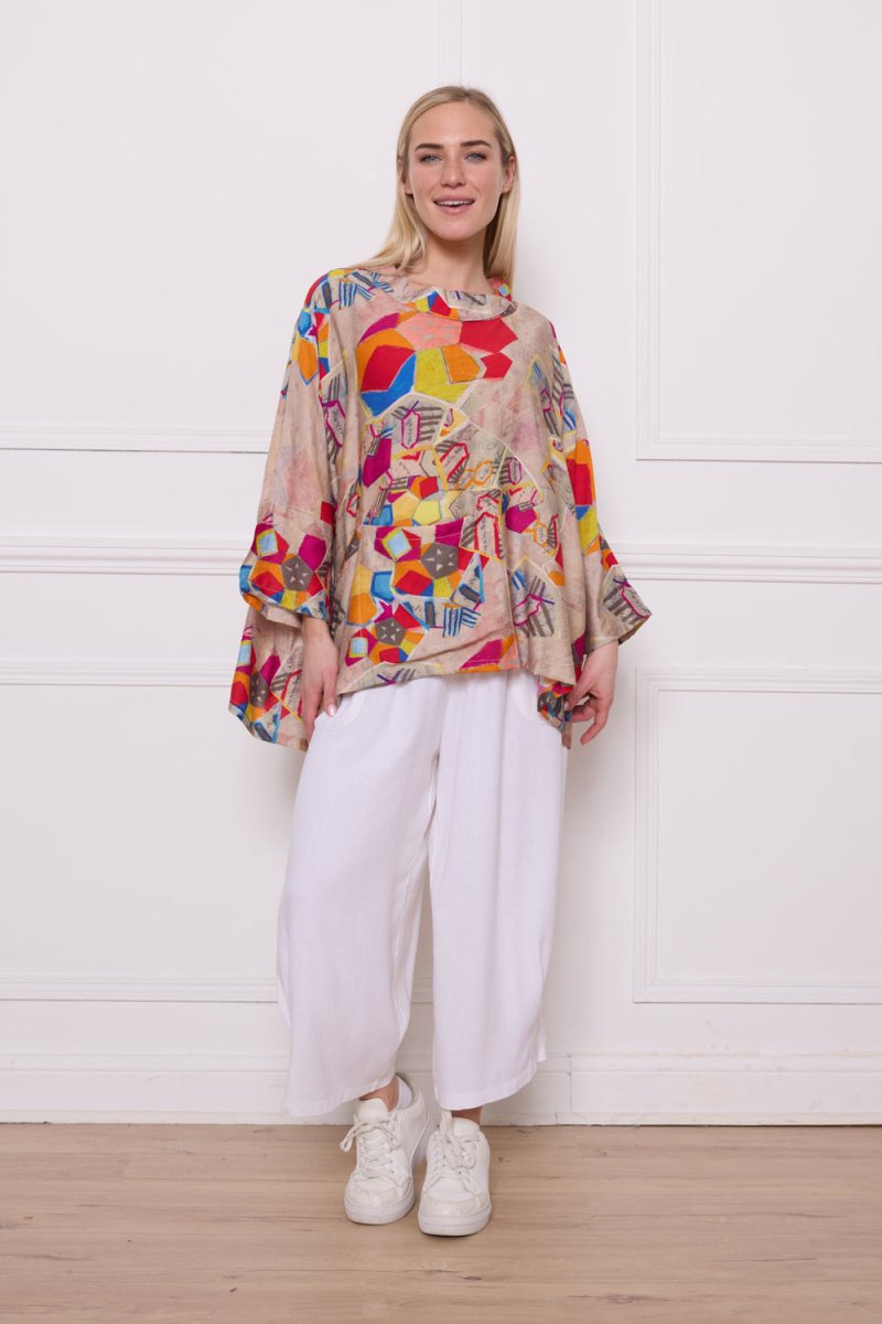 Sublimez votre silhouette avec notre blouse beige à motifs grande taille en viscose et nylon, alliance parfaite d'élégance intemporelle et de confort luxueux pour un style raffiné. Ses motifs délicats sur fond beige naturel apportent sophistication et polyvalence à votre garde-robe tandis que son mélange viscose-nylon offre un tombé fluide exceptionnel, vous garantissant une pièce aussi flatteuse que durable qui valorise vos courbes avec douceur.