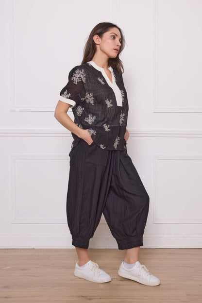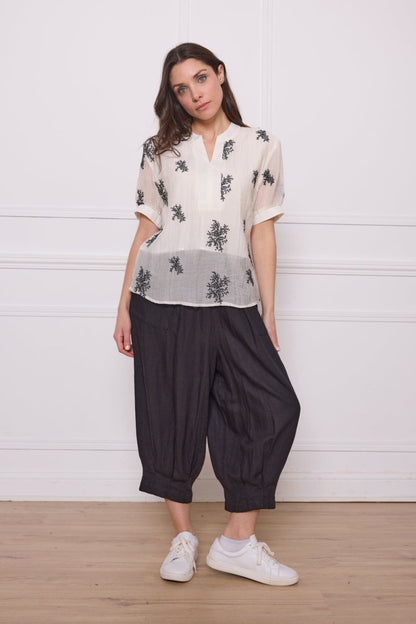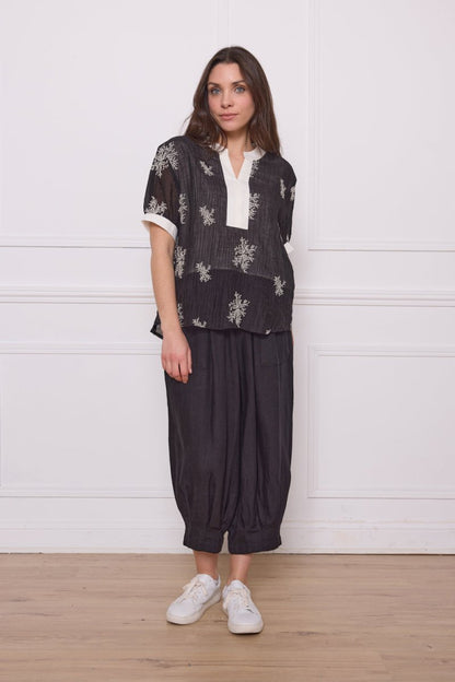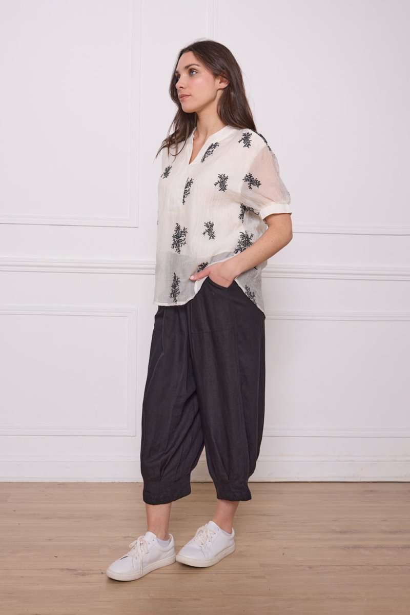Profitez d’un confort absolu avec ce haut fluide en coton et polyester, conçu pour une sensation de légèreté et une tenue impeccable tout au long de la journée. Son tissu respirant et sa coupe flatteuse en font une pièce idéale pour un look décontracté et élégant. Facile à porter, il s’associe à tous vos bas préférés pour une tenue polyvalente.